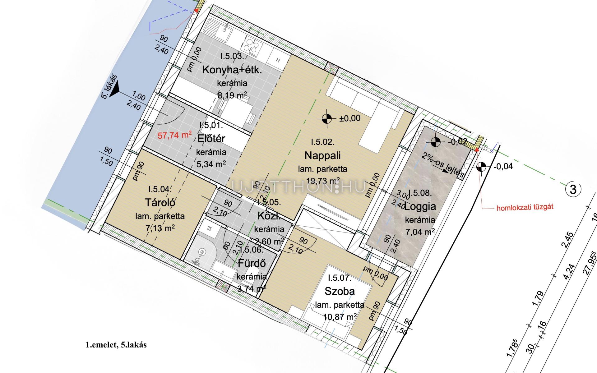 -Szobák: laminált parketta 7 500.-Ft. + áfa / nm