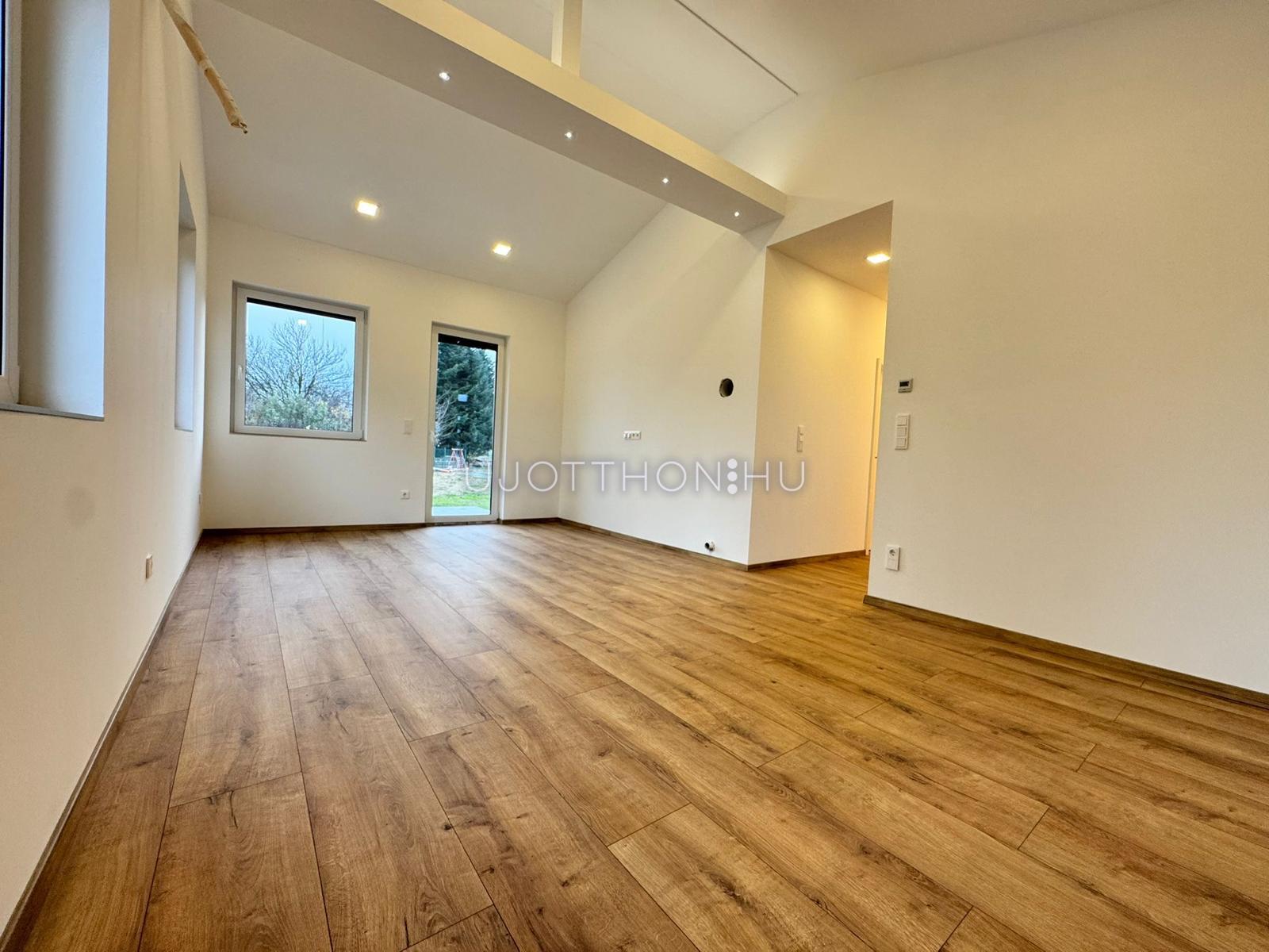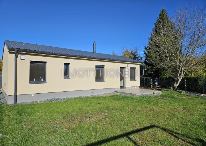 Kőszegen a Borostyánkő lakóparkban eladó fémvázas, könnyűszerkezetes családi ház 440 nm-es önálló helyrajzi számú telken.