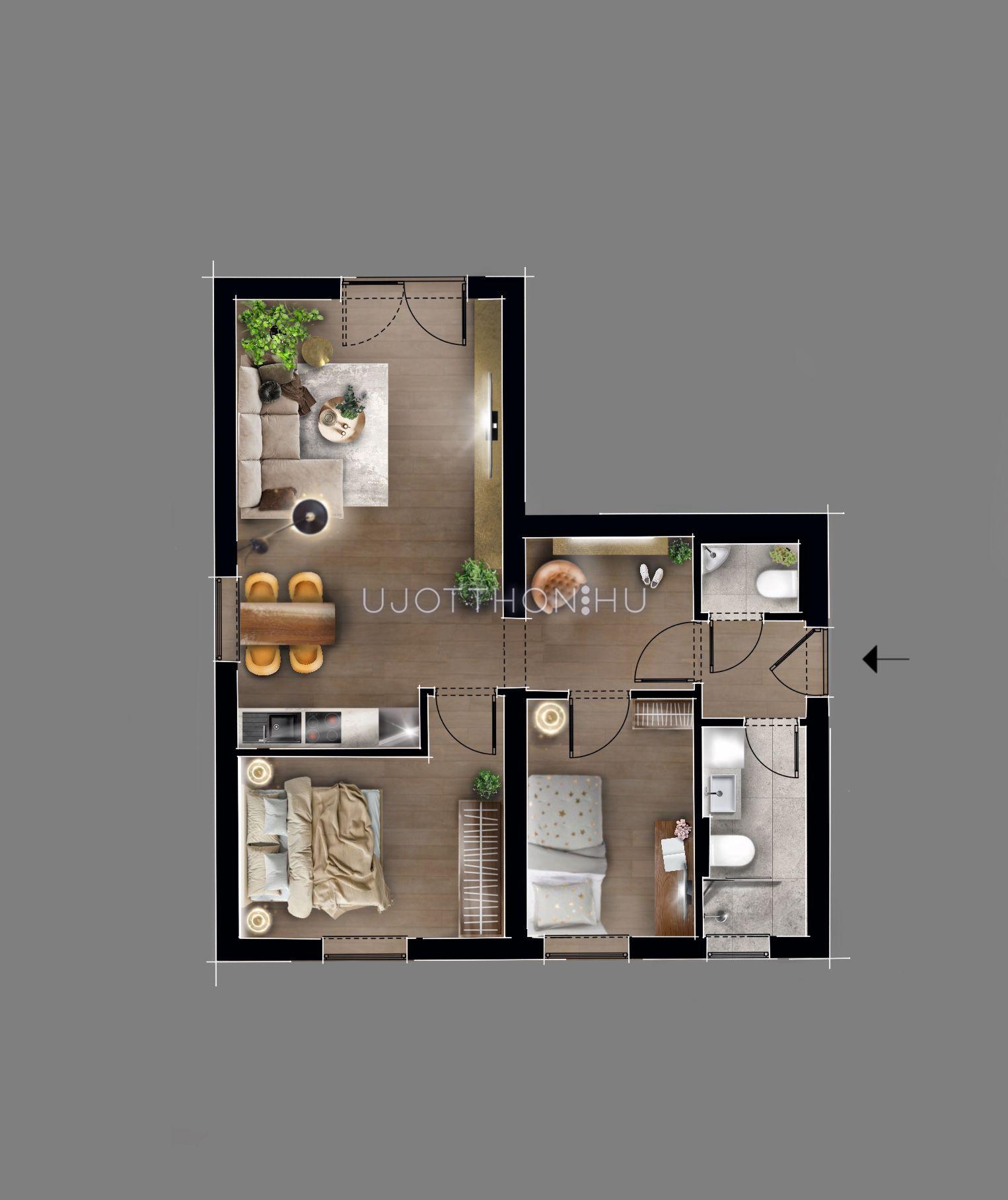 A beruházó az esetleges módosítások és anyagváltoztatás jogát fenntartja. A látványképek extra látványelemeket is tartalmazhatnak, ezek utólagosan nem számonkérhetők.