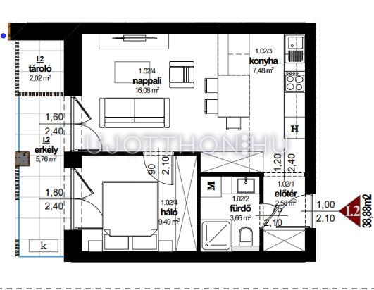 erkély 5.76 m2