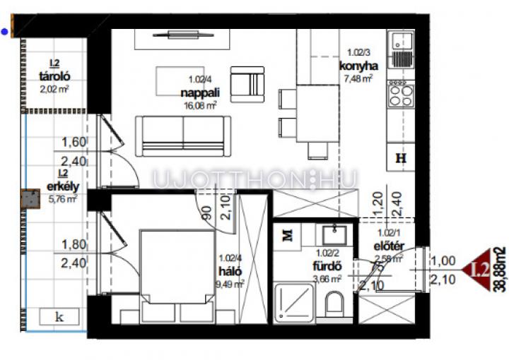 Erkély méret: 5.76 m2
