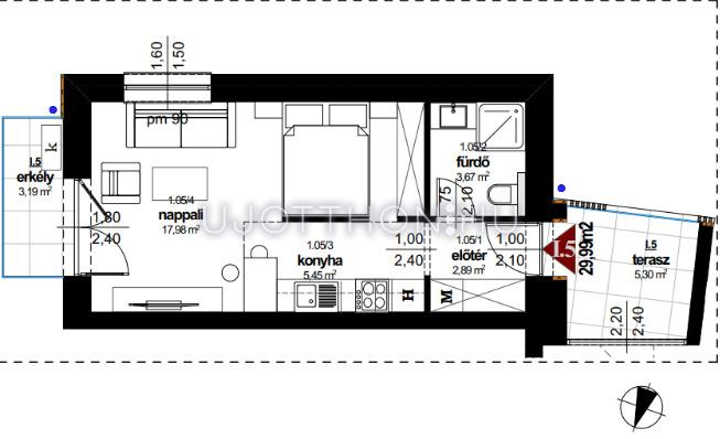 Méret (bruttó): 34 m2