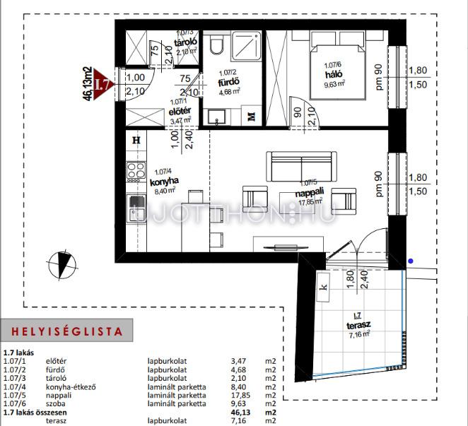 Erkély méret: 7.16 m2