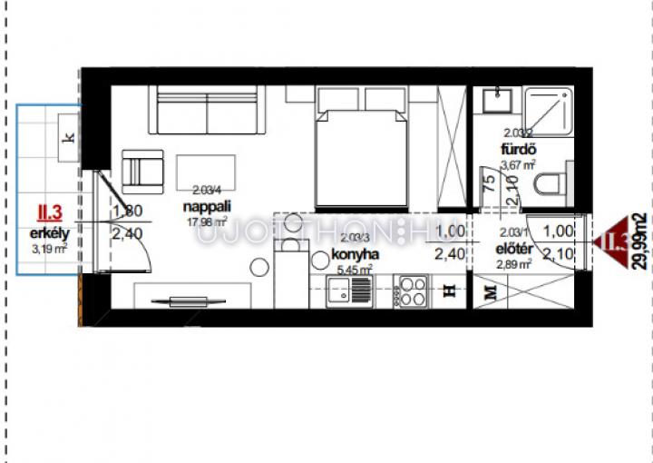 Erkély méret: 3.19 m2