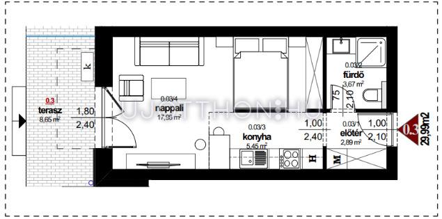 1 szobás 34 m2-es Lakás Alpok Spirit Társasház - Kőszegszerdahely