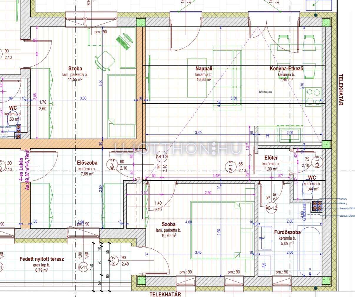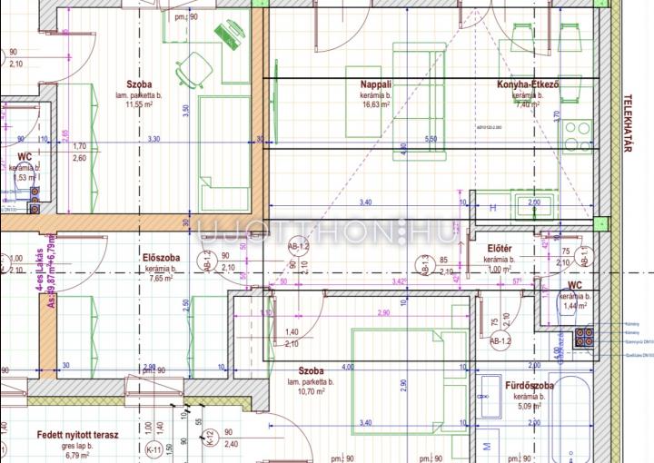 5. lakás: 66,72 m² + 12,35 nm terasz