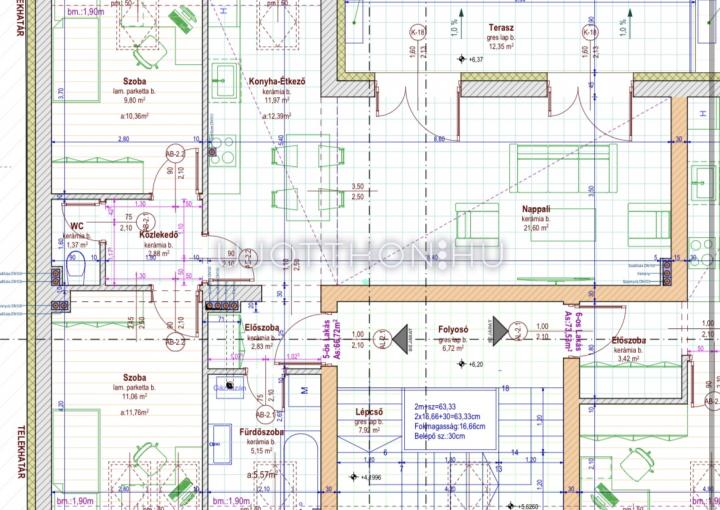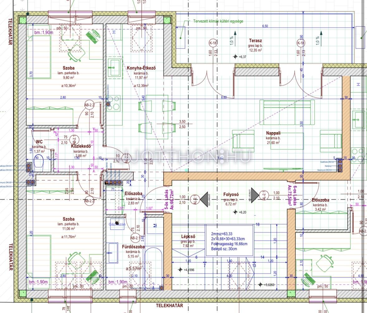 5. lakás: 66,72 m² + 12,35 nm terasz