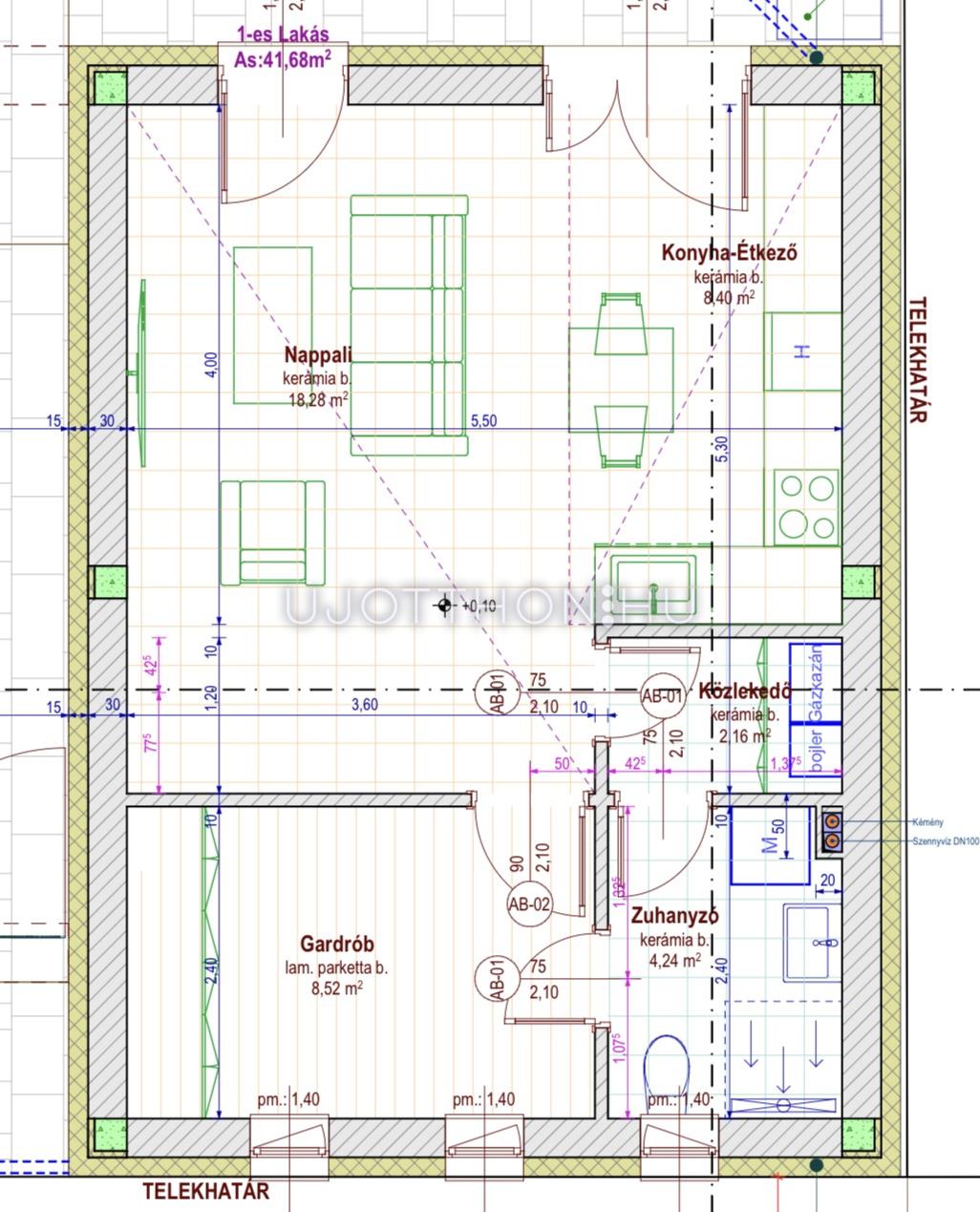 1. lakás: 41,68 m²