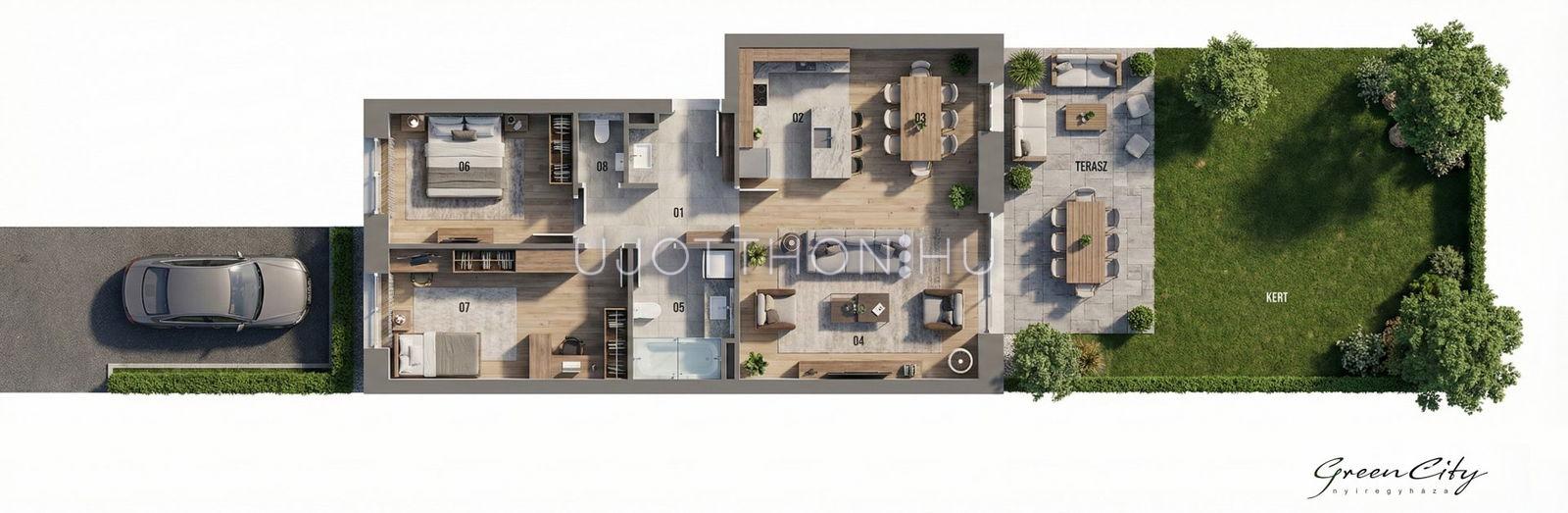 A GreenCity Nyíregyháza új, környezettudatos, zöld városrésze. A több ütemben megvalósuló, teljes készültségében közel 450 korszerű, energiatakarékos, idő- és értékálló otthona között mind a sorházat keresők, mind a kisebb alapterületű studio lakásokat, illetve a tágas családi otthonokat, akár tetőteraszos penthouse vagy kertkapcsolatos lakásokat keresők bizonyosan megtalálják új prémium otthonukat.
