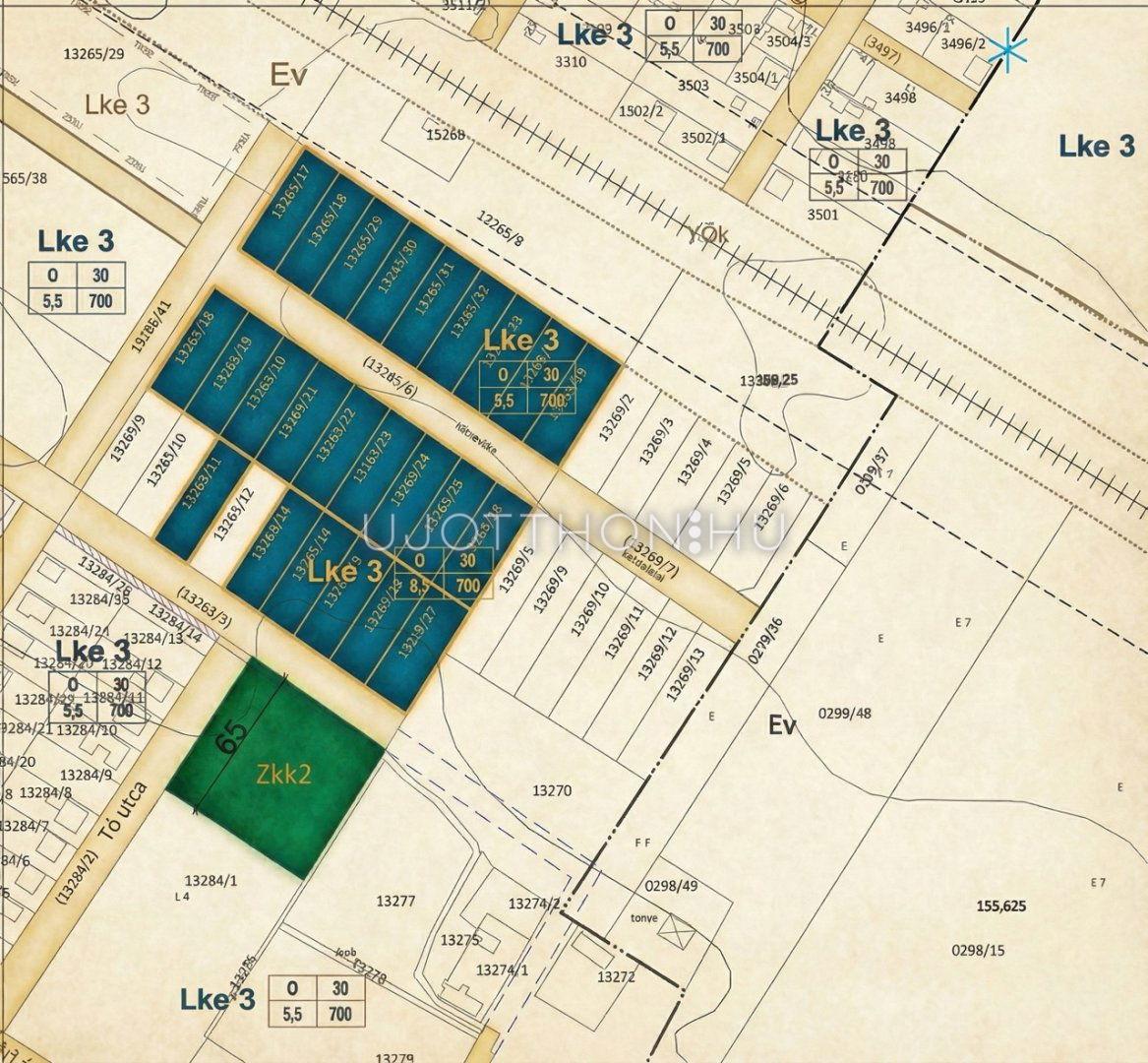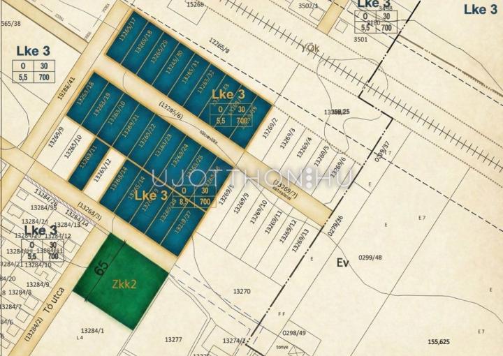 Beépíthetőség: 30%, ikerházak vagy családi házak építésére alkalmas övezet.