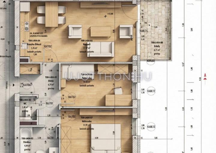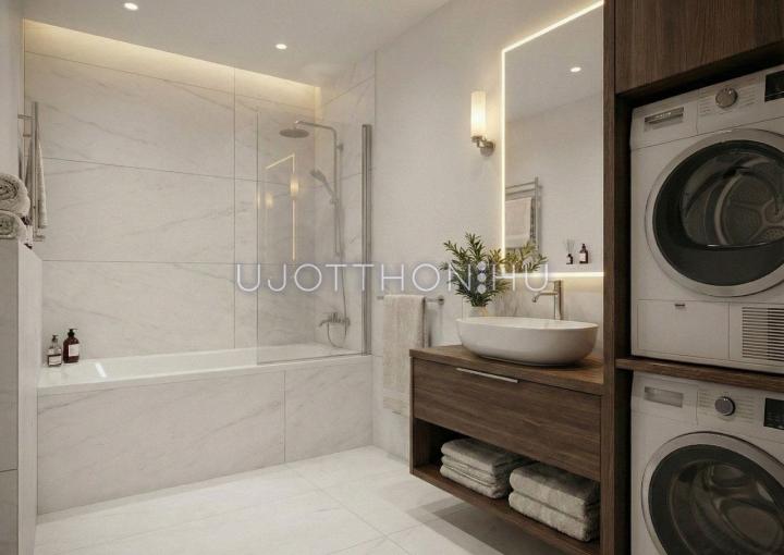 • Korszerű gépészet: Levegő-víz hőszivattyús rendszer biztosítja a padlófűtést és padlóhűtést, így nincs szükség klímára vagy radiátorokra.