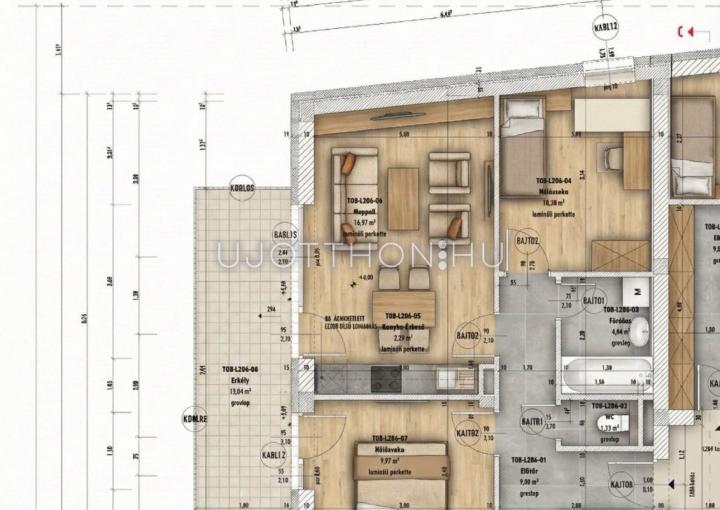 • Korszerű gépészet: Levegő-víz hőszivattyús rendszer biztosítja a padlófűtést és padlóhűtést, így nincs szükség klímára vagy radiátorokra.