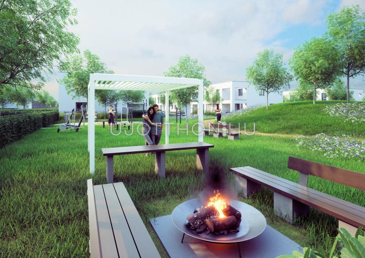 Az épületek tágas, növényzettel intenzíven telepített közös használatú pihenő- és rekreációs parkot ölelnek körbe, ahol napvitorlákkal védett kis játszótér, szabadtéri edzőeszközök, pergolákkal rendelkező kerti sütők, illetve csendes elvonulásra ugyancsak lehetőséget biztosító terek egyaránt megtalálhatóak.