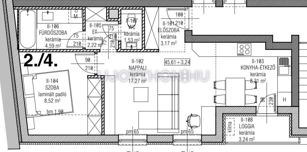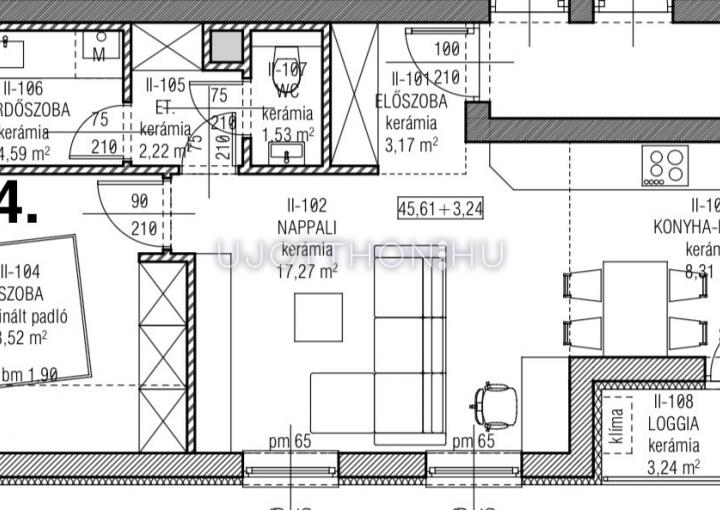 4.lakás: 45,61 nm + 3,24 nm loggia
