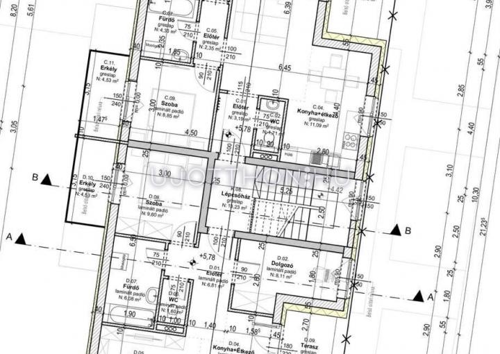 "C" lakás: 59,35 m2 + 7,18 m2 terasz + 4,53 m2 erkély