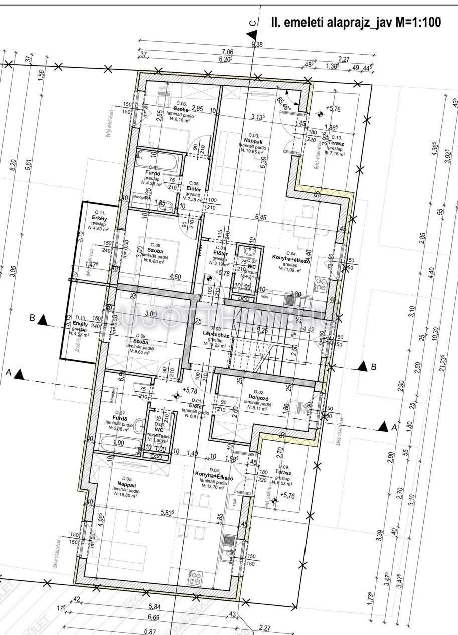 "C" lakás: 59,35 m2 + 7,18 m2 terasz + 4,53 m2 erkély