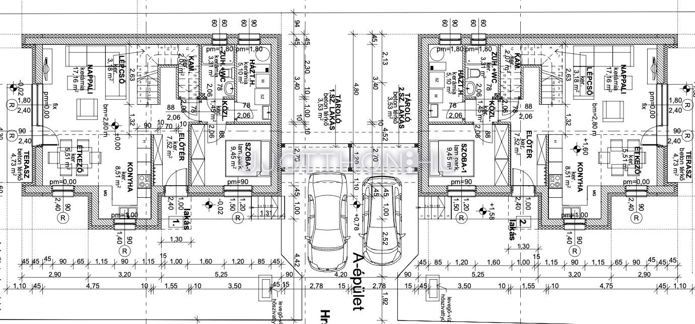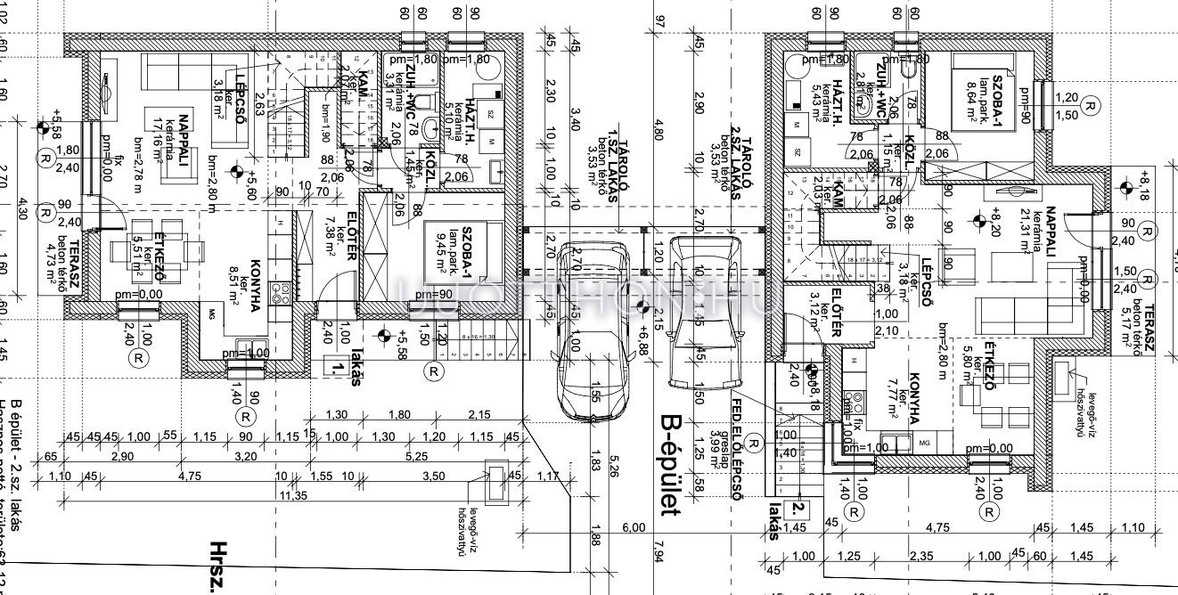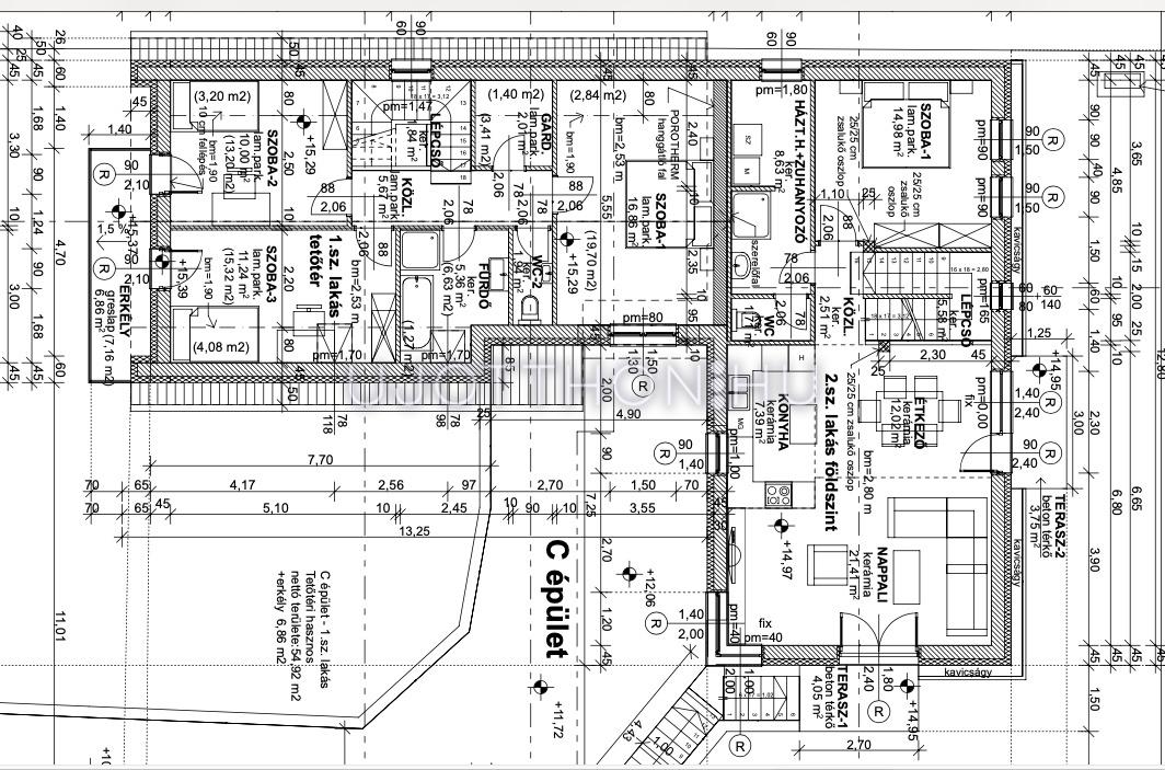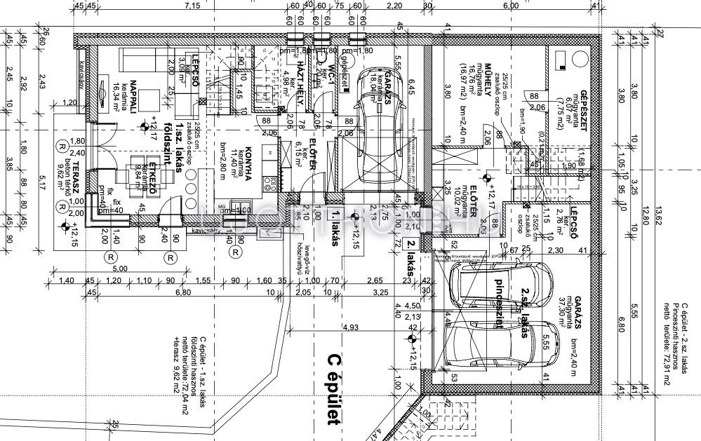 Különlegesség: a C épület egyik lakása háromszintes, kétállásos garázzsal és extra tárolási lehetőséggel