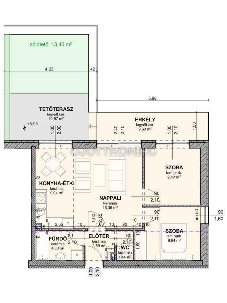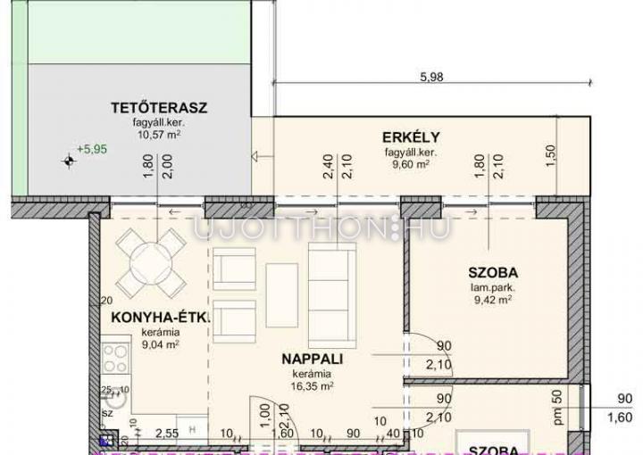 Eladásra kínálunk egy második emeleti, 55 m²-es lakást, amelyhez összesen 40 m² tetőterasz tartozik, mindössze 100 méterre az Aranyparti szabadstrandtól!
