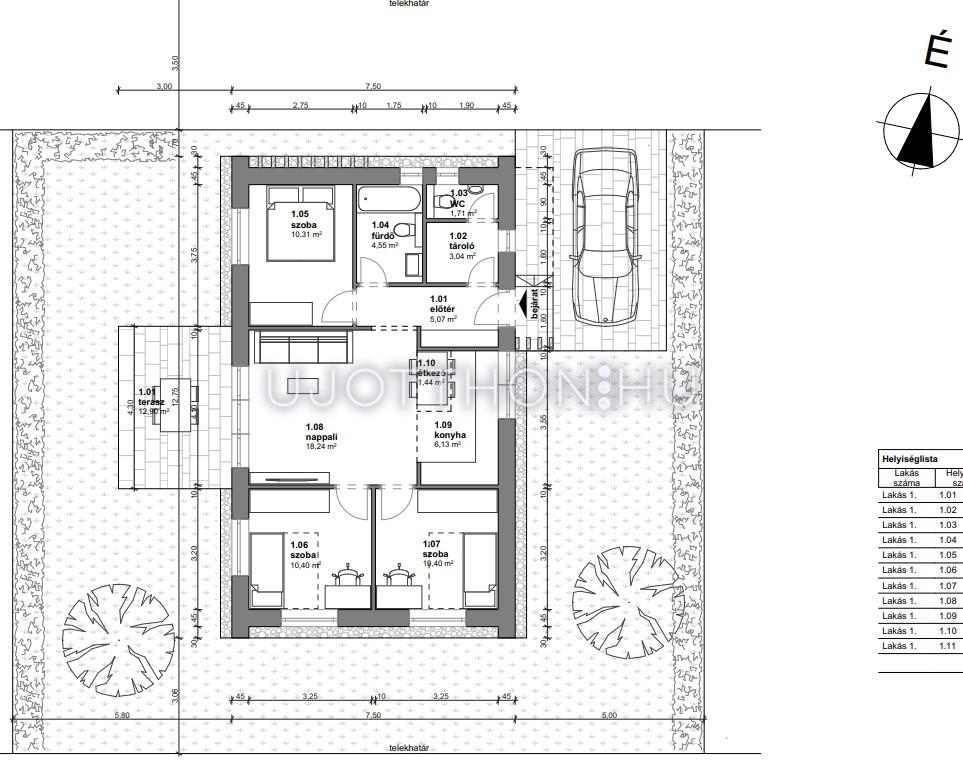 Terasz méret: 12.90 m2