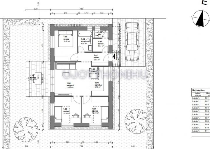 Tájolás: NY