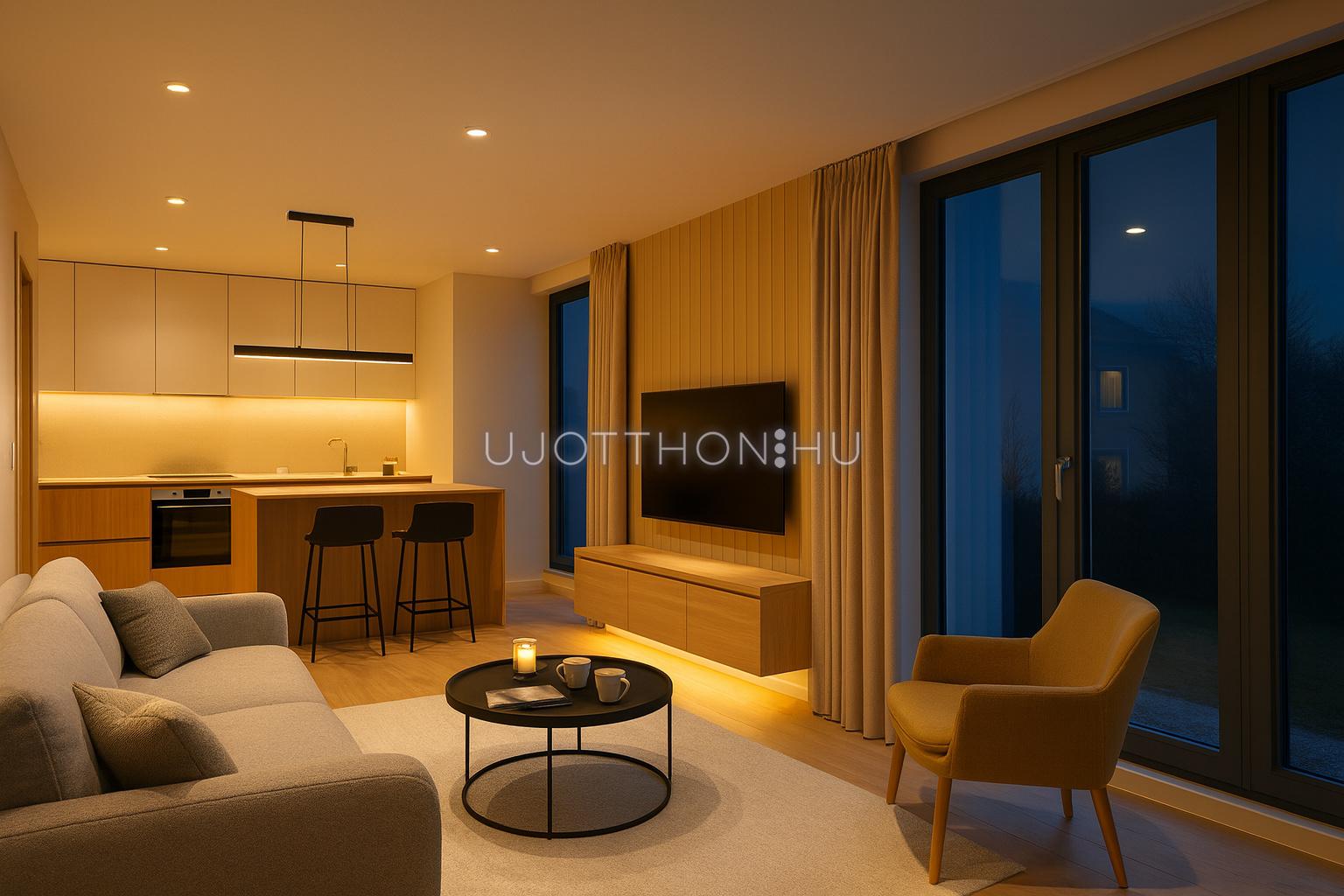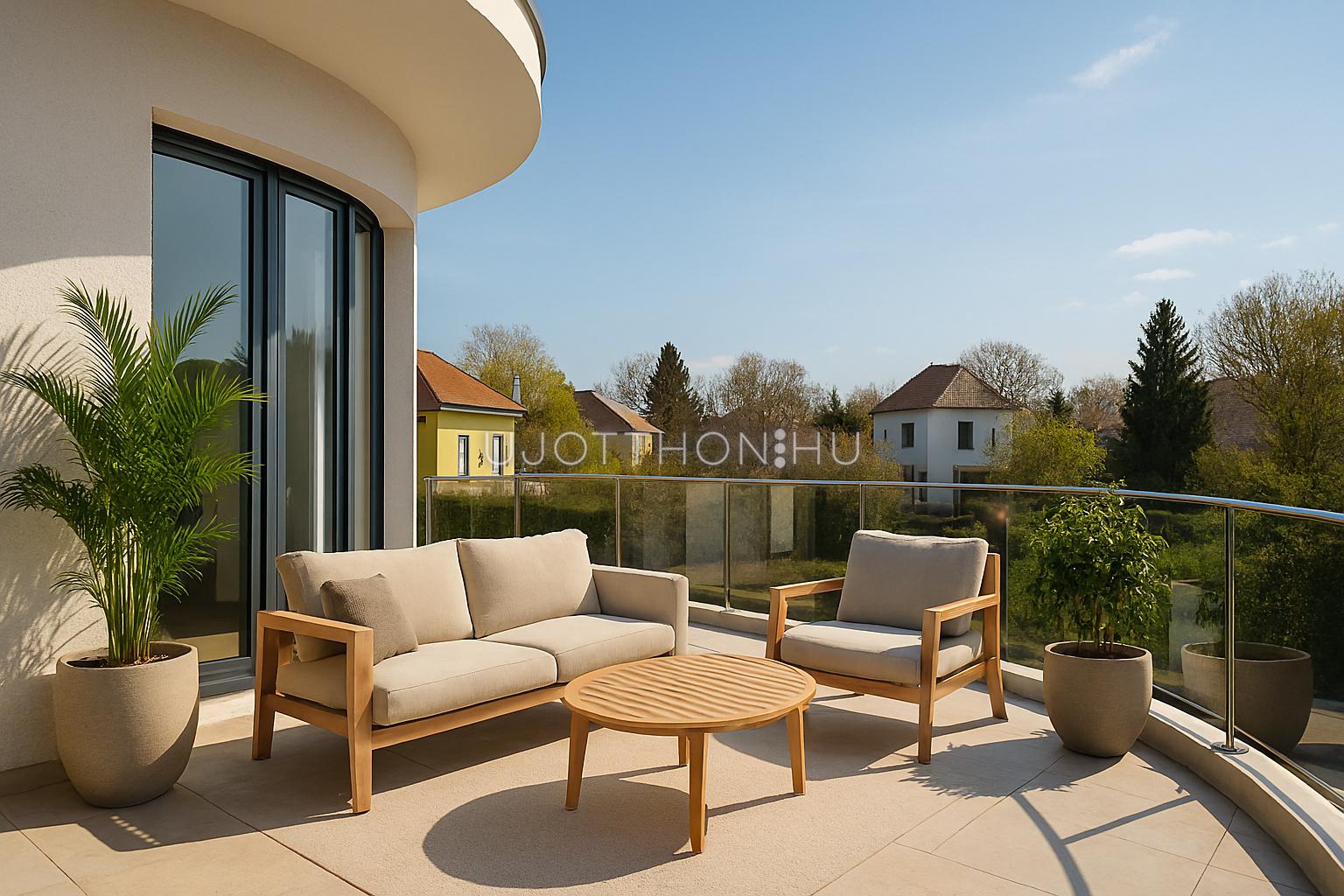 A nagy üvegfelületeknek és a kiváló tájolásnak köszönhetően a belső terek egész nap világosak, miközben a terasz természetes módon meghosszabbítja az életteret. Ideális helyszín reggeli kávéhoz, naplementés vacsorákhoz vagy akár egy privát lounge kialakításához.