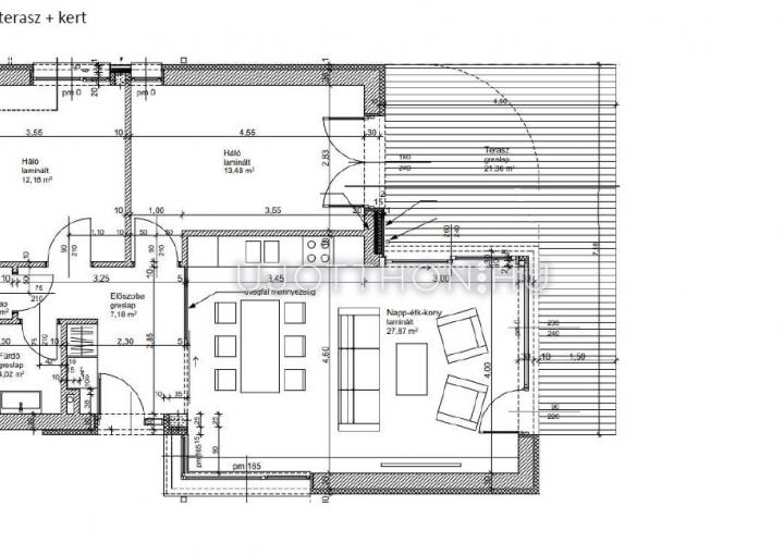 90 m²-es földszinti lakás + 14 m² terasz + privát kert (csendes hátsó kert felé)