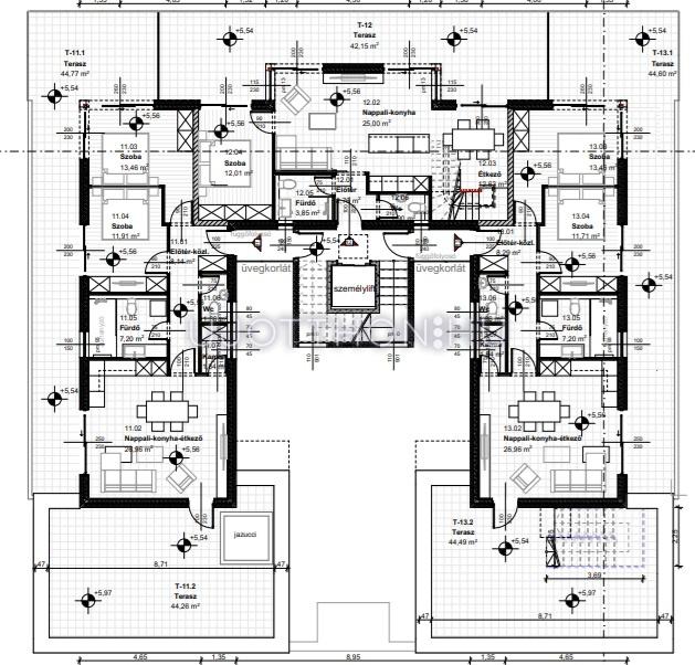 - a folyosók, teraszok burkolata porcelán vagy gránitl