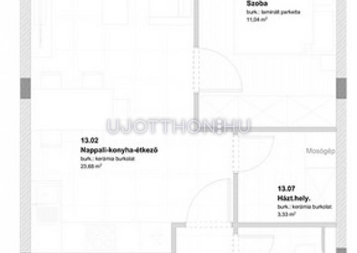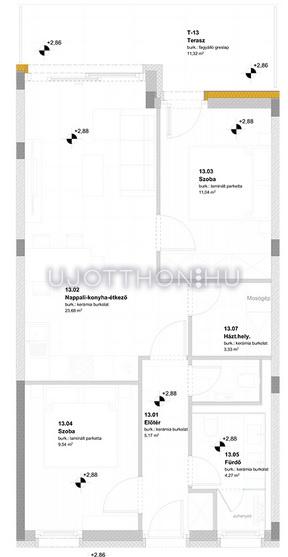 Első emeleti É tájolású, teraszos saroklakás. Hasznos alapterülete:61 nm , a terasz 12 nm -es.