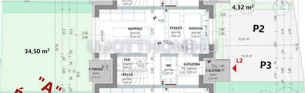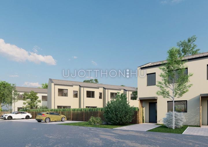 74nm összterület két szinten, zárt kerítéssel körbe ölelt, saját kertkapcsolattal, előkerttel, zárt tárolóval és felszíni parkolóval.