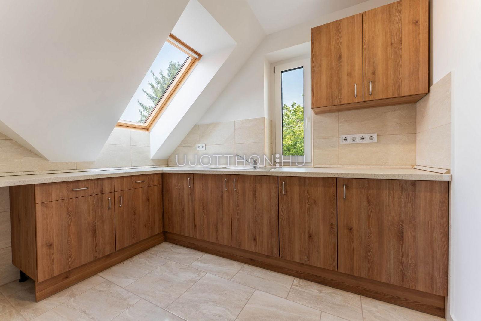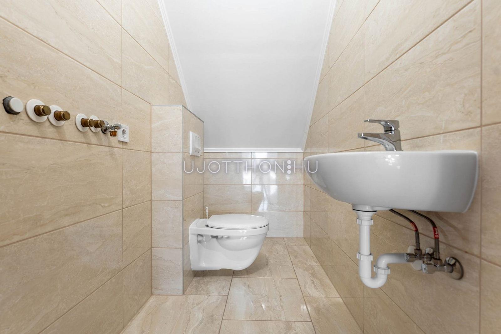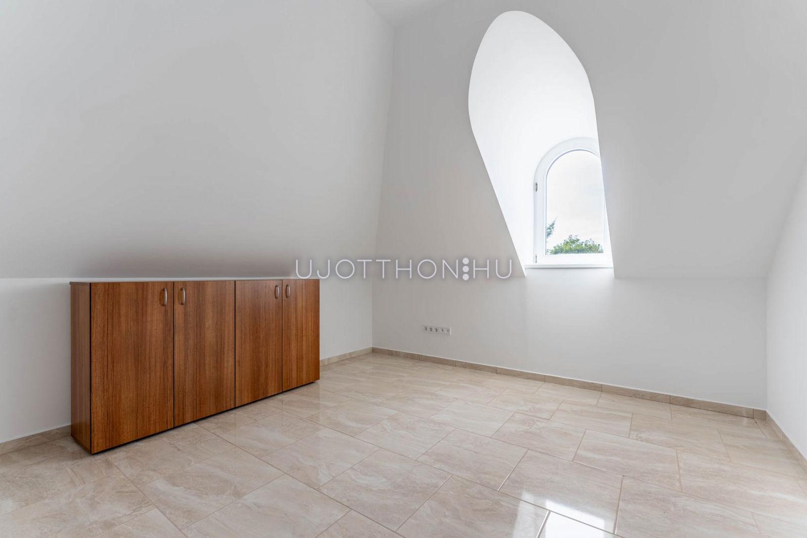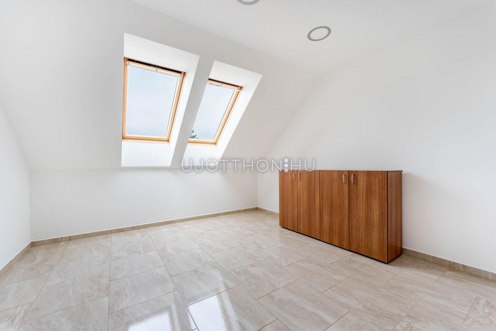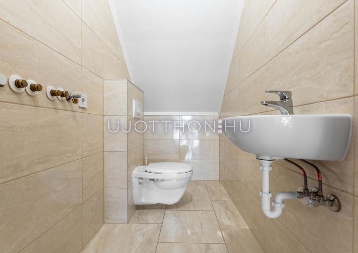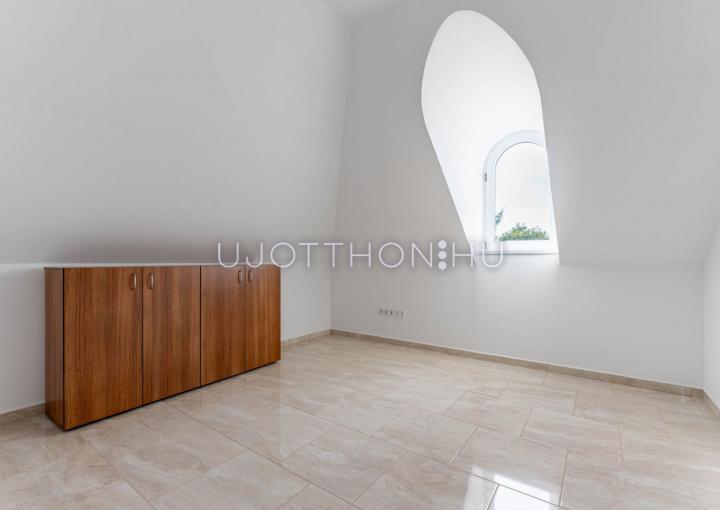 74nm összterület két szinten, zárt kerítéssel körbe ölelt, saját kertkapcsolattal, előkerttel, zárt tárolóval és felszíni parkolóval.