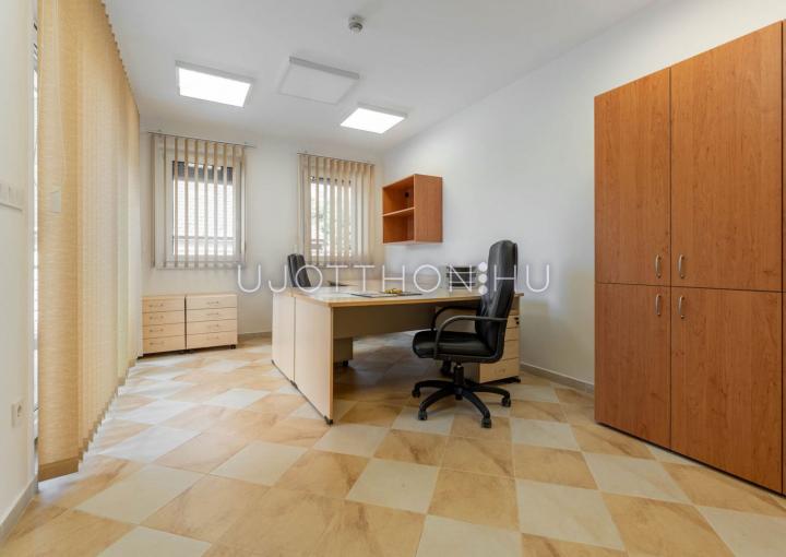 Két szinten kialakított, több helyiségből álló irodai tevékenységre alkalmas épület. Bútorozott, klímával felszerelt helyiségekkel,