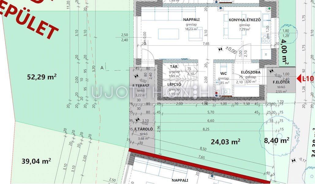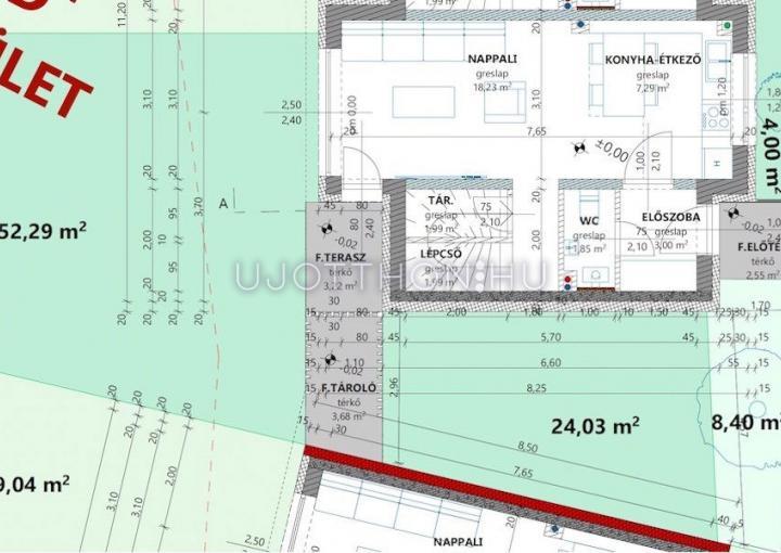 • Mindegyik lakáshoz tartozik saját kert/udvar. Némelyik lakásnak előkertje és oldalkertje is van. Az úgynevezett hátsó kertkapcsolat 180cm magas esztétikus kerítéssel körbe ölelt privát terület. A nappaliból lehet megközelíteni, kialakított teraszon keresztül.