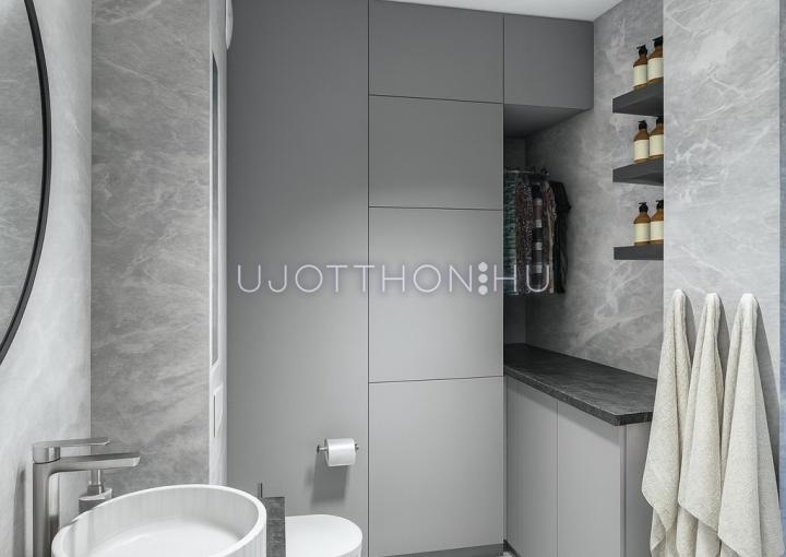 Burkolatok, szaniterek modern dizájn szerint lettek kiválasztva, melyek készültségi szintnek megfelelően igény esetén választhatóak-cserélhetőek lesznek.