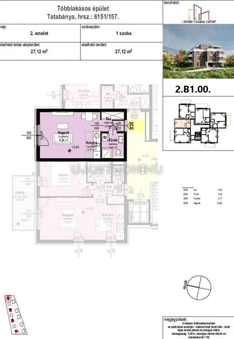 1 szobás 27 m2-es Lakás Liget Lakópark - Tatabánya, Kertváros, Alkotmány utca 1/A