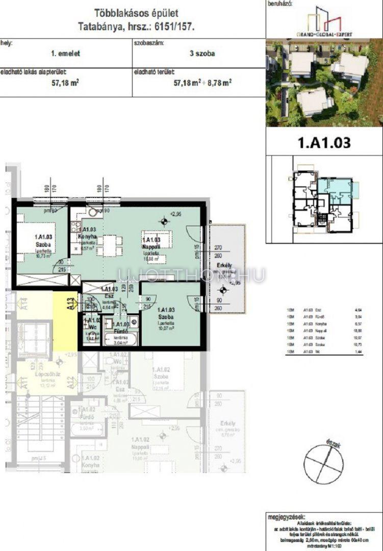 3 szobás 57 m2-es Lakás Liget Lakópark - Tatabánya, Kertváros, Alkotmány utca 1/A