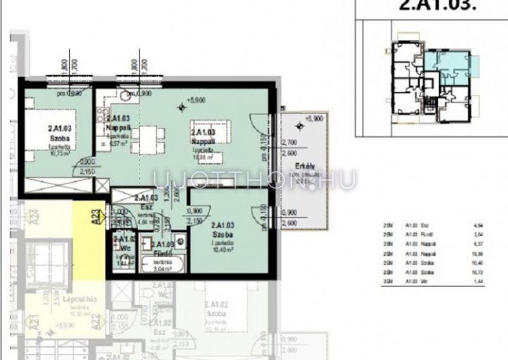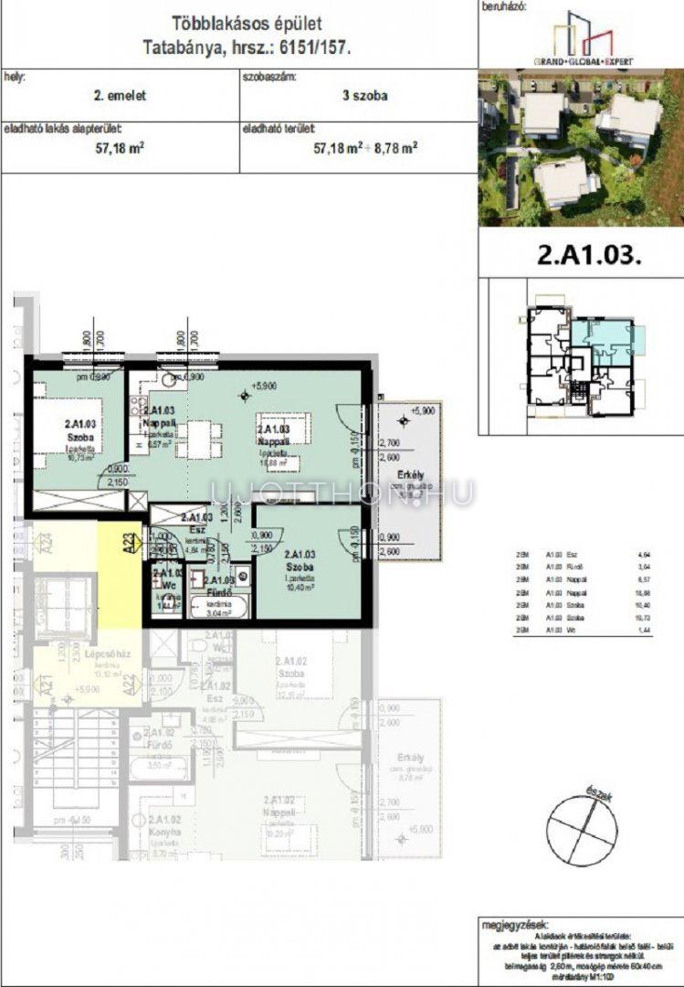 3 szobás 57 m2-es Lakás Liget Lakópark - Tatabánya, Kertváros, Alkotmány utca 1/A