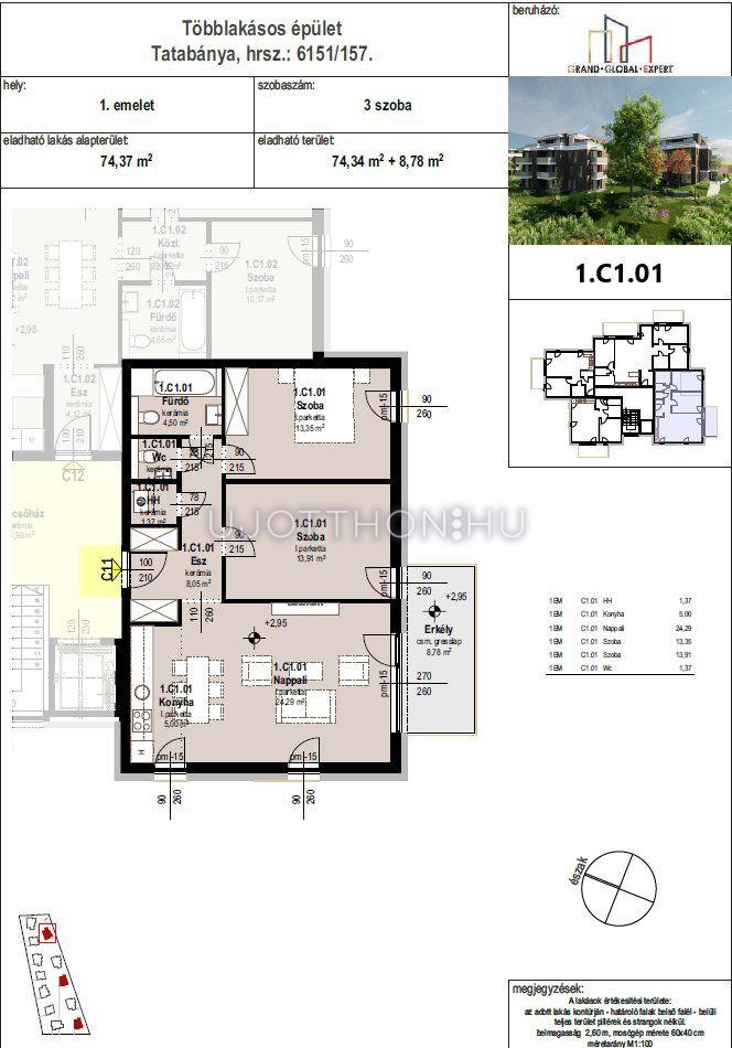 3 szobás 74 m2-es Lakás Liget Lakópark - Tatabánya, Kertváros, Alkotmány utca 1/A