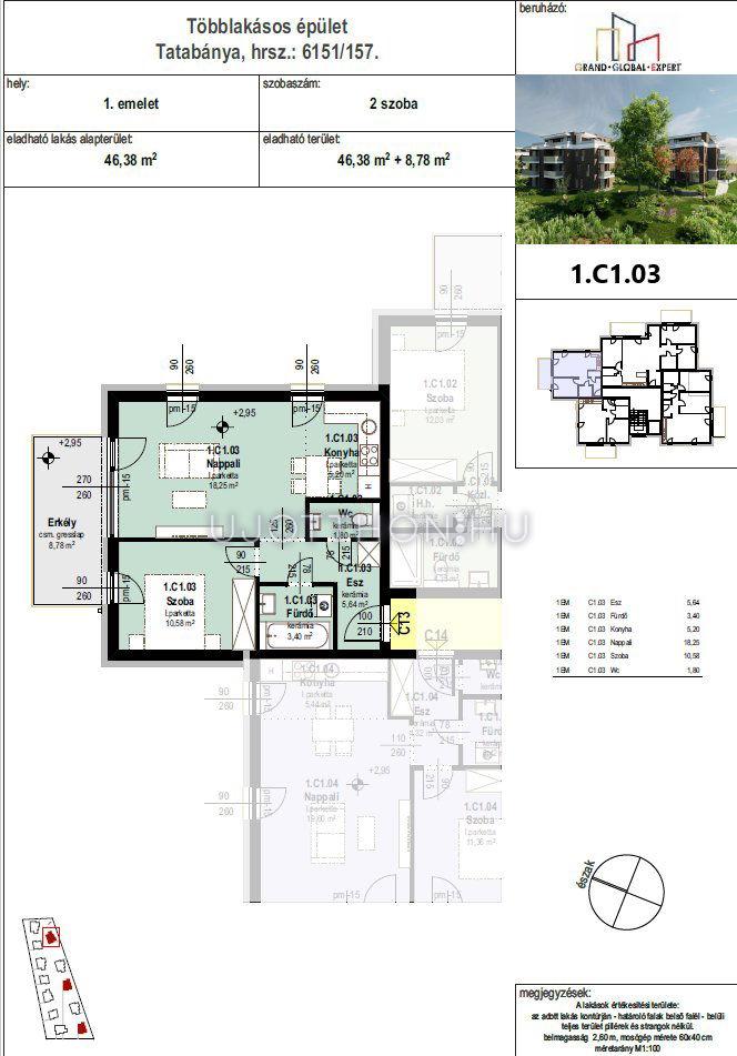 2 szobás 46 m2-es Lakás Liget Lakópark - Tatabánya, Kertváros, Alkotmány utca 1/A