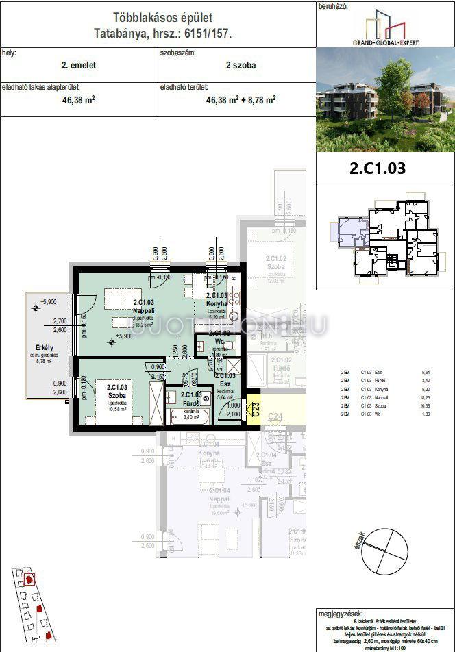 2 szobás 46 m2-es Lakás Liget Lakópark - Tatabánya, Kertváros, Alkotmány utca 1/A