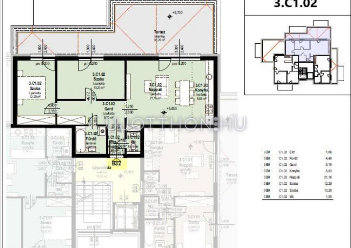 •Tárolók: külön megvásárolhatók a "B" és "C" épületben. "A" épületben közös tároló kerül kialakításra.