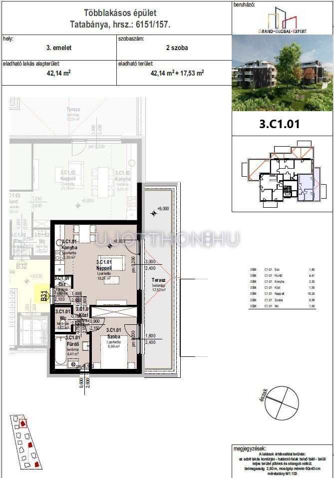 2 szobás 42 m2-es Lakás Liget Lakópark - Tatabánya, Kertváros, Alkotmány utca 1/A