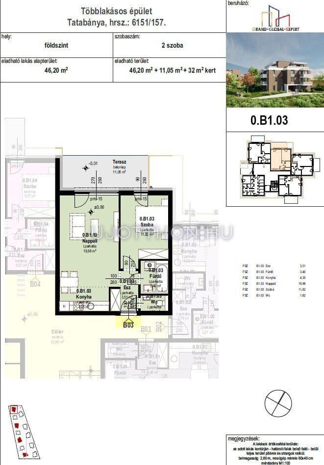 2 szobás 46 m2-es Lakás Liget Lakópark - Tatabánya, Kertváros, Alkotmány utca 1/A