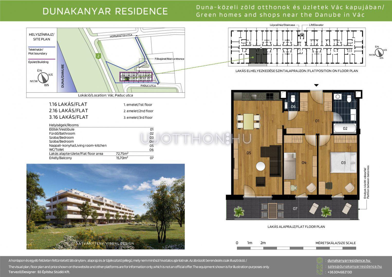 3 szobás 72 m2-es Lakás Dunakanyar Residence - Vác, Václiget, Paduc utca