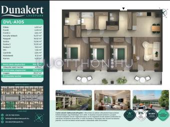 A Dunakert Lakópark Vác északi részén, a Németh László utcában épül, egy csendes, rendezett városrészben, közvetlenül a Duna-part mellett. A négyszintes épületben 152 modern, energiahatékony lakás kap helyet. A praktikus stúdióktól a nappali + több hálószobás családi otthonokig. Az emeleti lakásokhoz tágas terasz, a földszintiekhez saját kert tartozik, így minden lakó számára biztosított a privát kültéri tér és a természetkapcsolat.