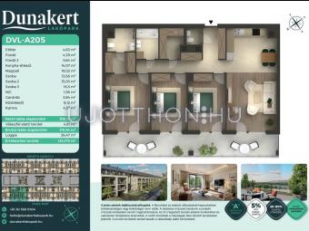 A Dunakert Lakópark Vác északi részén, a Németh László utcában épül, egy csendes, rendezett városrészben, közvetlenül a Duna-part mellett. A négyszintes épületben 152 modern, energiahatékony lakás kap helyet. A praktikus stúdióktól a nappali + több hálószobás családi otthonokig. Az emeleti lakásokhoz tágas terasz, a földszintiekhez saját kert tartozik, így minden lakó számára biztosított a privát kültéri tér és a természetkapcsolat.