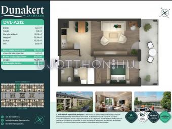 A Dunakert Lakópark Vác északi részén, a Németh László utcában épül, egy csendes, rendezett városrészben, közvetlenül a Duna-part mellett. A négyszintes épületben 152 modern, energiahatékony lakás kap helyet. A praktikus stúdióktól a nappali + több hálószobás családi otthonokig. Az emeleti lakásokhoz tágas terasz, a földszintiekhez saját kert tartozik, így minden lakó számára biztosított a privát kültéri tér és a természetkapcsolat.