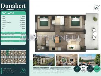 A Dunakert Lakópark Vác északi részén, a Németh László utcában épül, egy csendes, rendezett városrészben, közvetlenül a Duna-part mellett. A négyszintes épületben 152 modern, energiahatékony lakás kap helyet. A praktikus stúdióktól a nappali + több hálószobás családi otthonokig. Az emeleti lakásokhoz tágas terasz, a földszintiekhez saját kert tartozik, így minden lakó számára biztosított a privát kültéri tér és a természetkapcsolat.