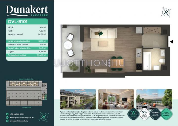 1 szobás 33 m2-es Lakás Dunakert - Vác, Kisvác-Iskolaváros, Németh László utca