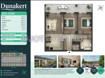 A Dunakert Lakópark Vác északi részén, a Németh László utcában épül, egy csendes, rendezett városrészben, közvetlenül a Duna-part mellett. A négyszintes épületben 152 modern, energiahatékony lakás kap helyet. A praktikus stúdióktól a nappali + több hálószobás családi otthonokig. Az emeleti lakásokhoz tágas terasz, a földszintiekhez saját kert tartozik, így minden lakó számára biztosított a privát kültéri tér és a természetkapcsolat.