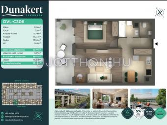 A Dunakert Lakópark Vác északi részén, a Németh László utcában épül, egy csendes, rendezett városrészben, közvetlenül a Duna-part mellett. A négyszintes épületben 152 modern, energiahatékony lakás kap helyet. A praktikus stúdióktól a nappali + több hálószobás családi otthonokig. Az emeleti lakásokhoz tágas terasz, a földszintiekhez saját kert tartozik, így minden lakó számára biztosított a privát kültéri tér és a természetkapcsolat.